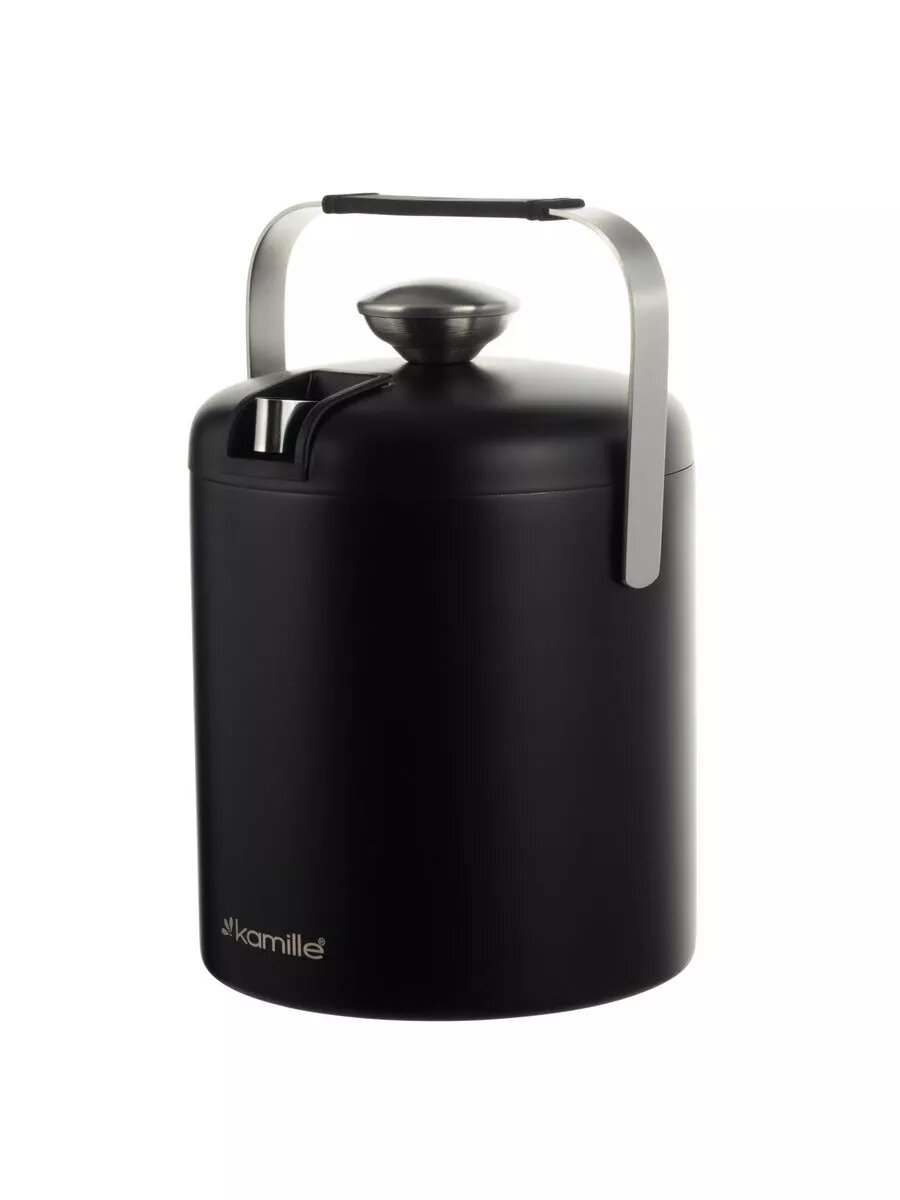 Ведерко для льда 1300 мл. с крышкой Kamille KM 7767 из нержавеющей стали с ручкой и щипцами (1,3 л. / черный) 2 363 ₽
