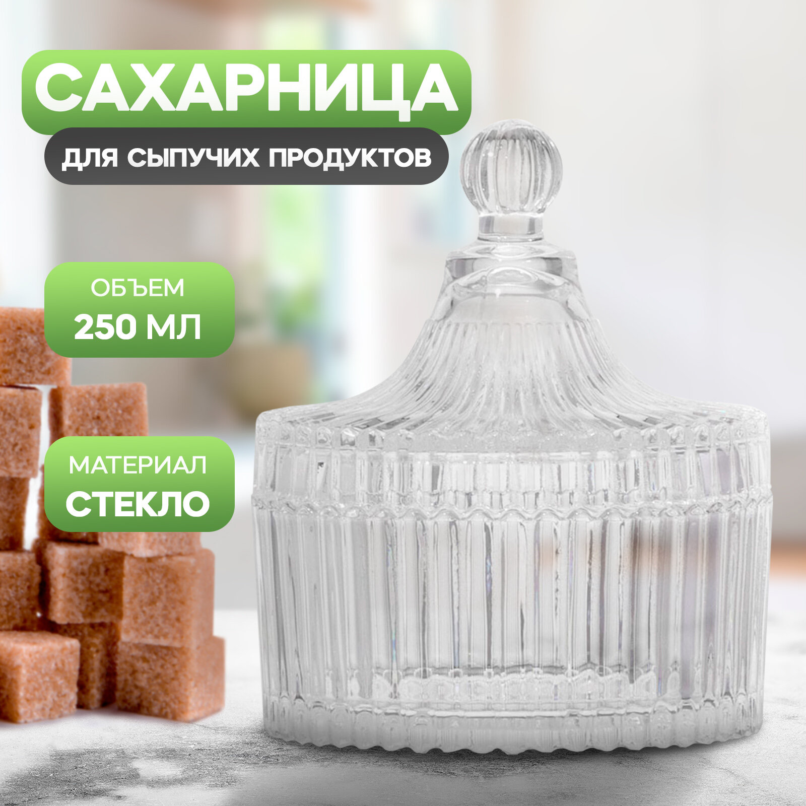 Сахарница Доляна «Любава», 250 мл, 10×10,5 см, стекло