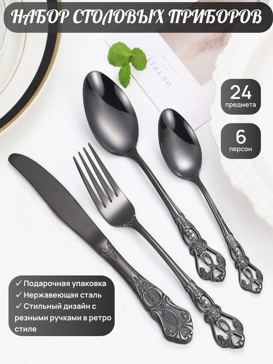 Набор столовых приборов из 24 предметов на 6 персон РЕЗНОЕ ЧЁЕРНОЕ информация: