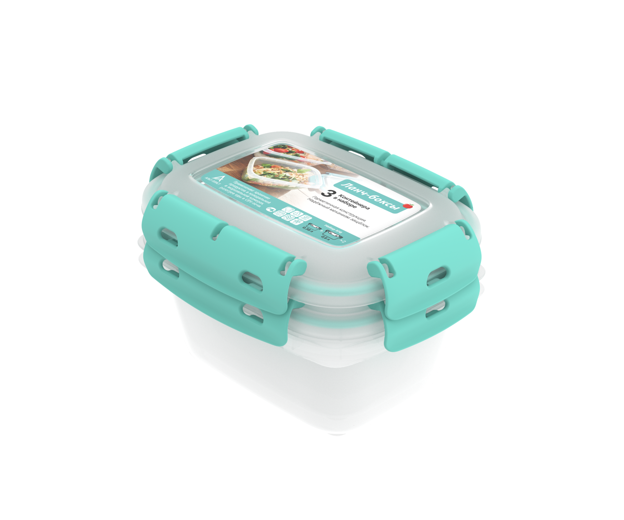 Контейнеры для хранения продуктов Альт-Пласт из пластика, с механизмом защелок, с крышками, 3шт / ланч бокс