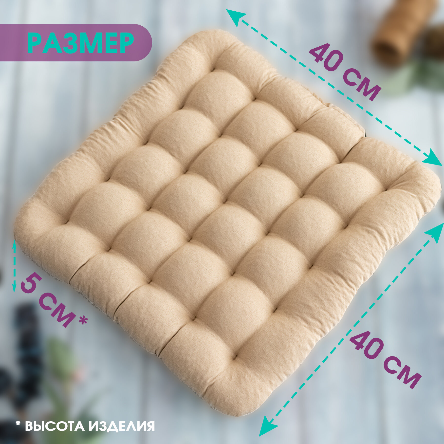 Подушка на стул Bio-Line /Декоративная подушка/Сидушка высоким бортом/Табуретник/Квадратная/40х40 см