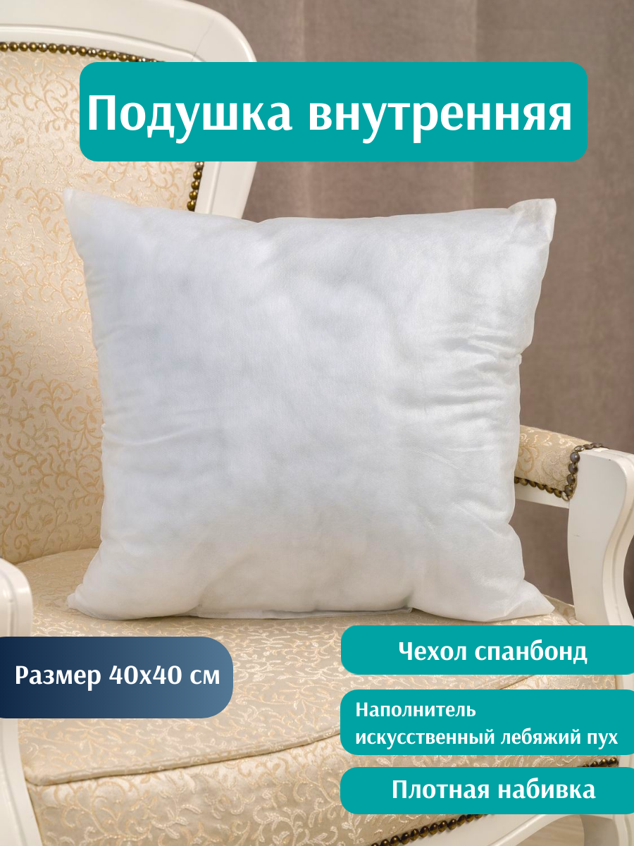 10 цен на Подушка внутренняя декоративная спанбонд размер 40*40 см лебяжий пух