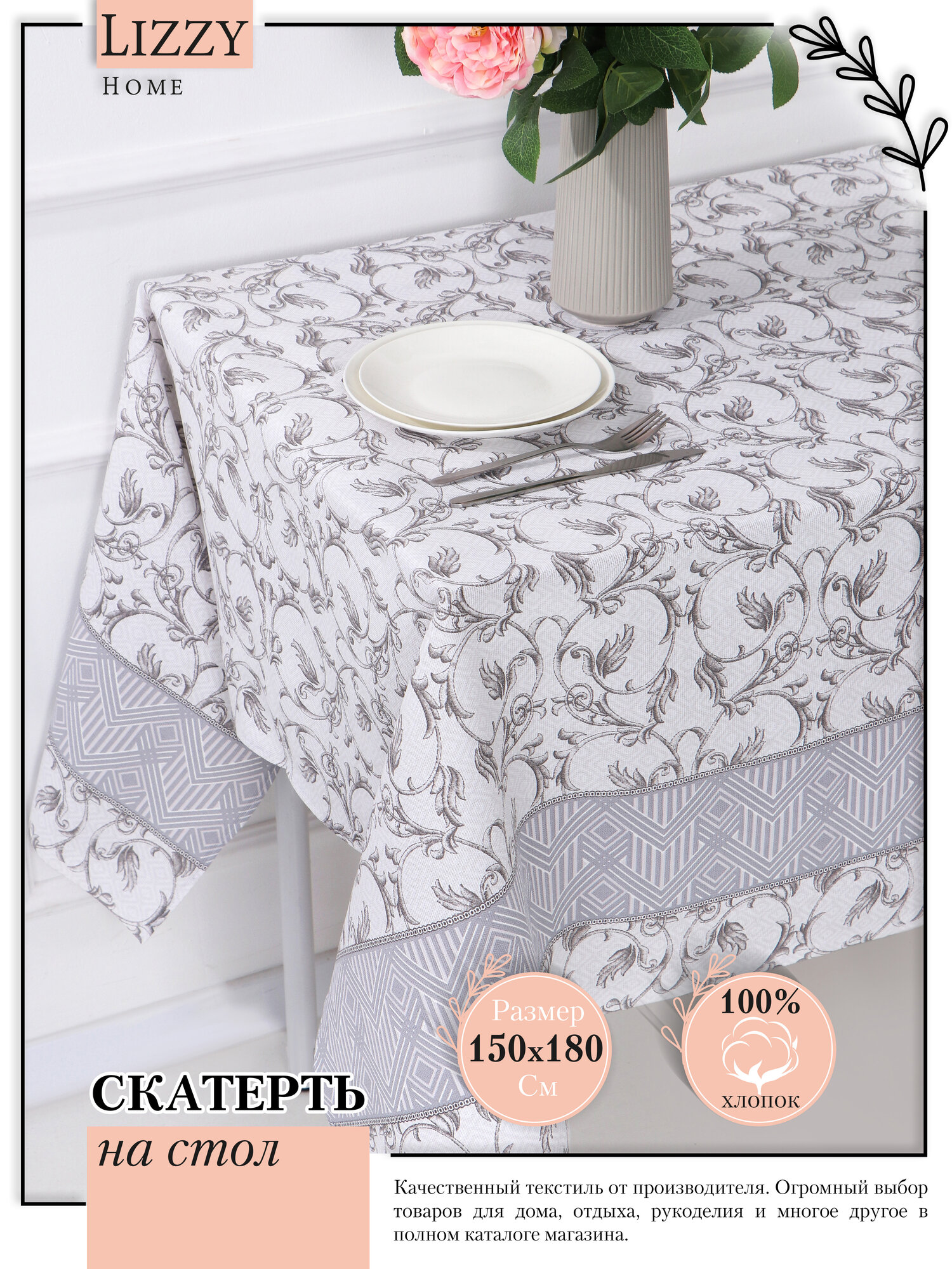 Скатерть Lizzy Home рогожка размер 150*180 см цвет серый 100% хлопок
