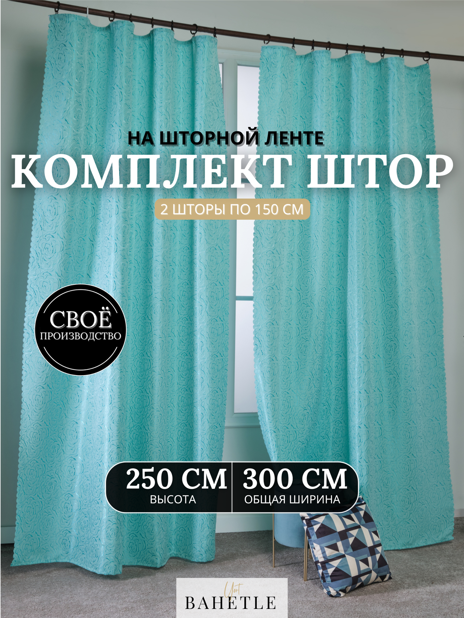 Комплект штор Bahetle Мона Розочки, размер 300х250 см, цвет бирюзовый информация: