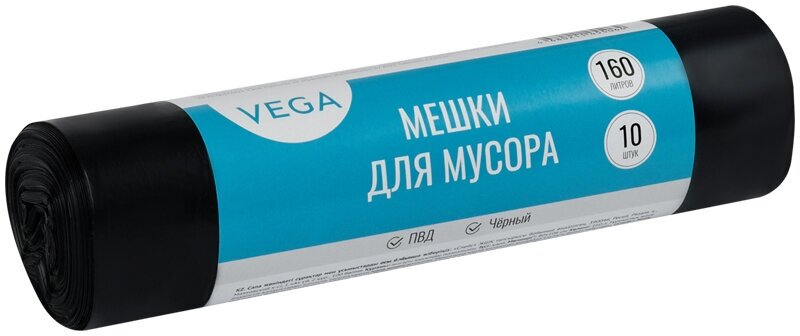 Мешки для мусора 160л Vega ПВД, 80*106см, 20мкм, 10шт, черные, в рулоне (арт. 344029) информация: