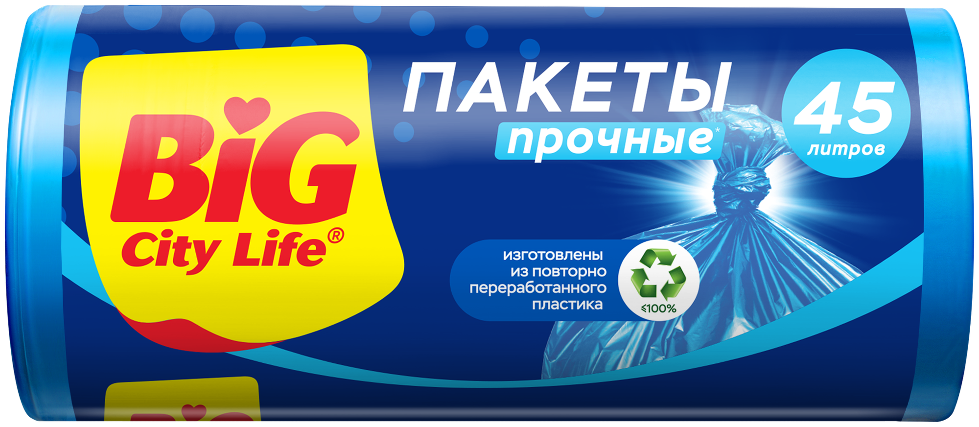 Мешки для мусора BIG City Life 55*70 45 л, 20 шт, 1 рулон, синий информация: