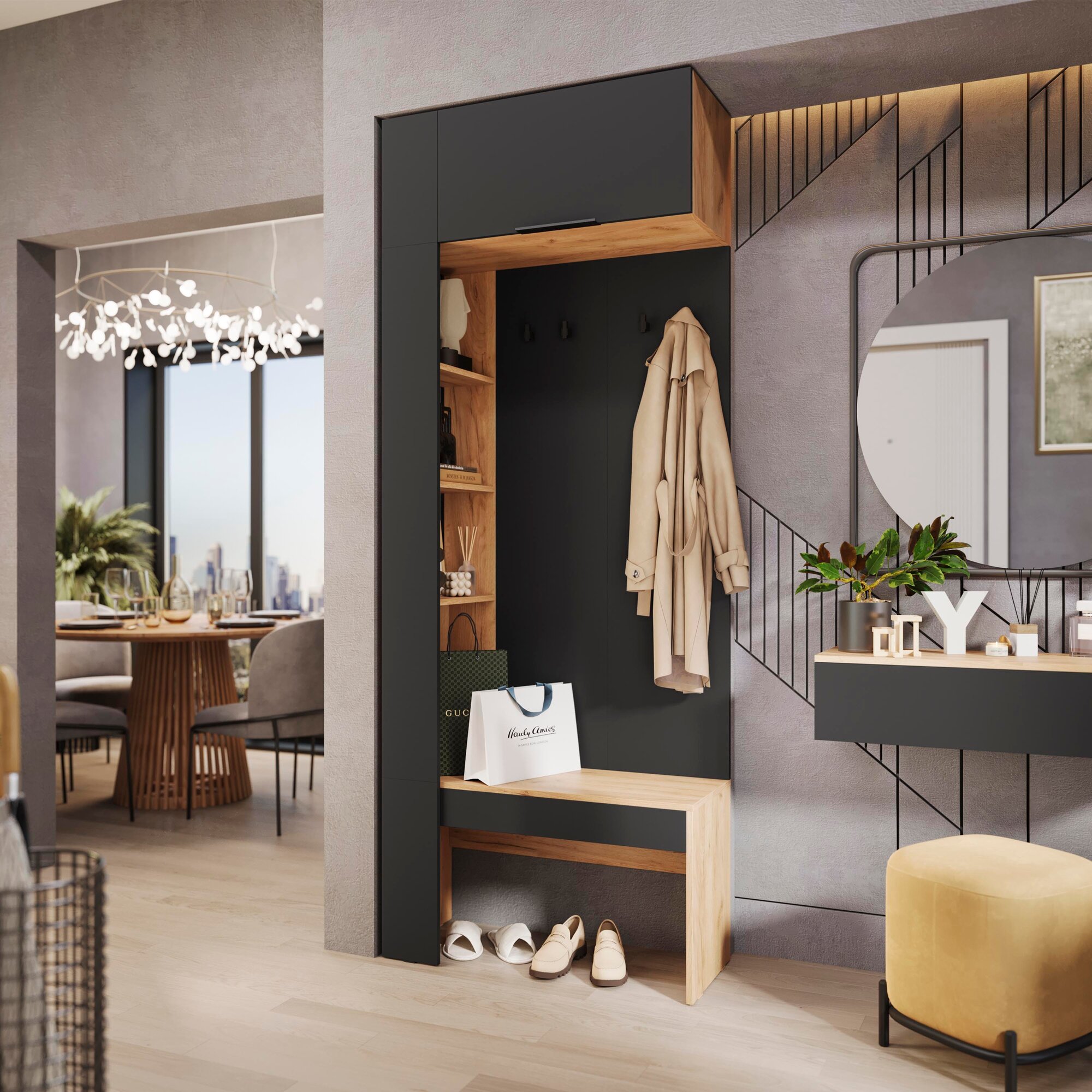 Прихожая Айсберг Лофт 100/6 Черный/Дуб крафт табак