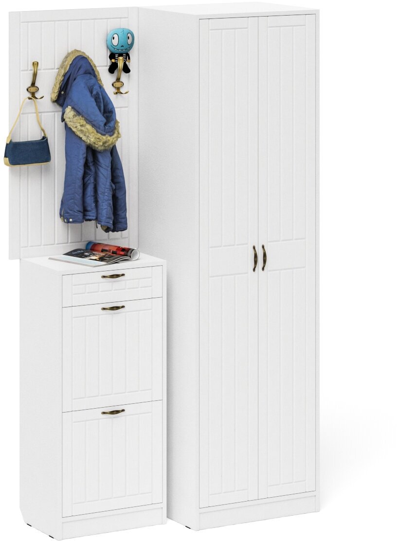 10 цен на Мебель для прихожей П-6 № 18, цвет белая шагрень/фасады МДФ белое дерево фрезеровка прованс, ШхГхВ 120х50х210 см, универсальная сборка