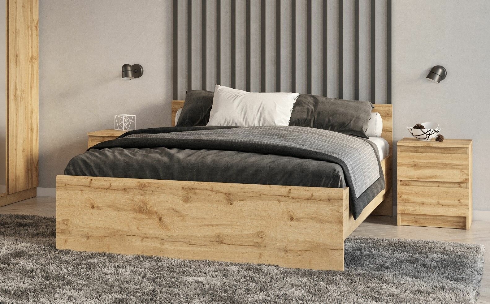 10 цен на Кровать STERN с ортопедическим основанием 140х200 см, Дуб Вотан, 143,9х70х204,7 см