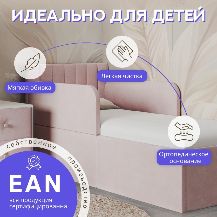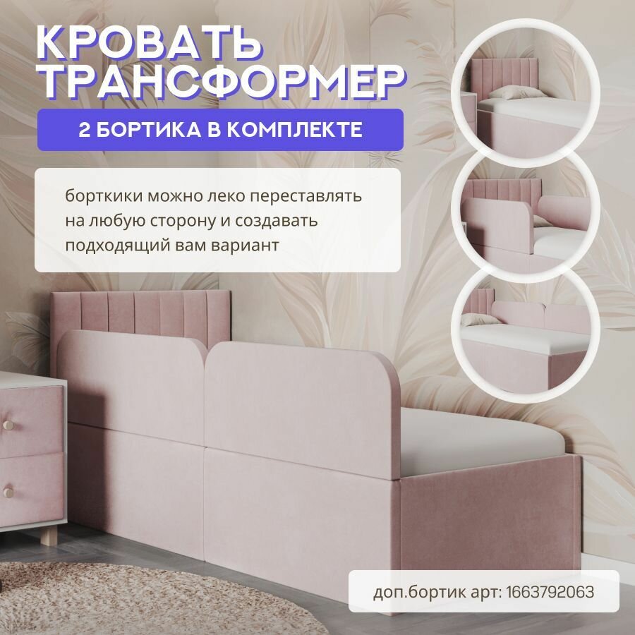 10 цен на Кровать детская 160х80 с защитными бортиками, полоска Мия, розовый, трансформер, ткань велюр