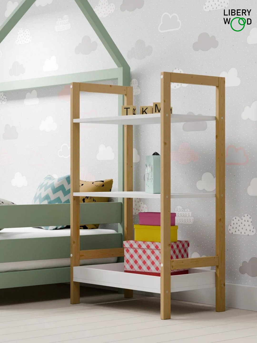 Стеллаж Libery Wood "ОТТО", деревянный, 62 см x 37 см x 100см, белая/светло-коричневая информация: