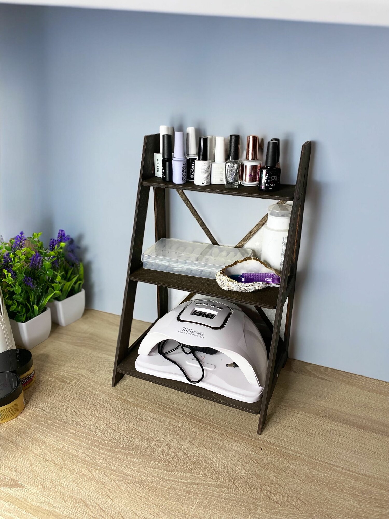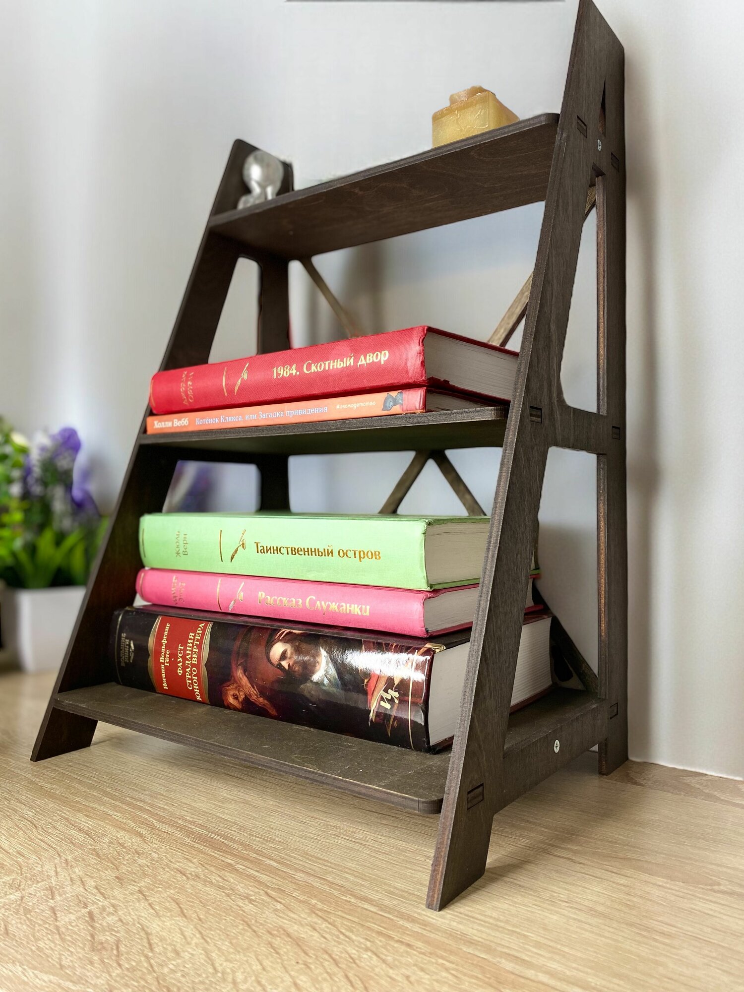 Отзывы на Этажерка трехярусная настольная деревянная 26*20*40 см, Венге сплошные полки