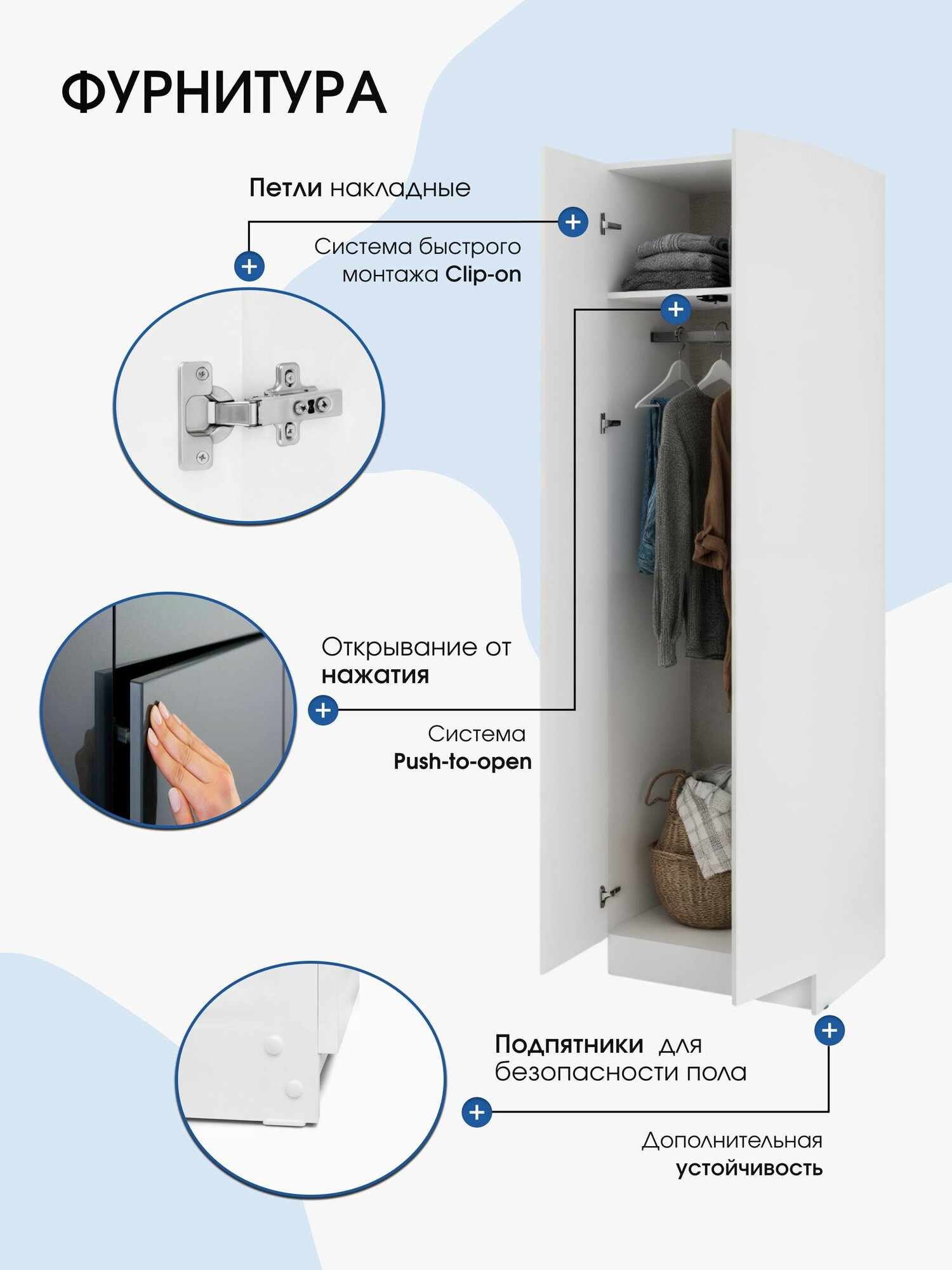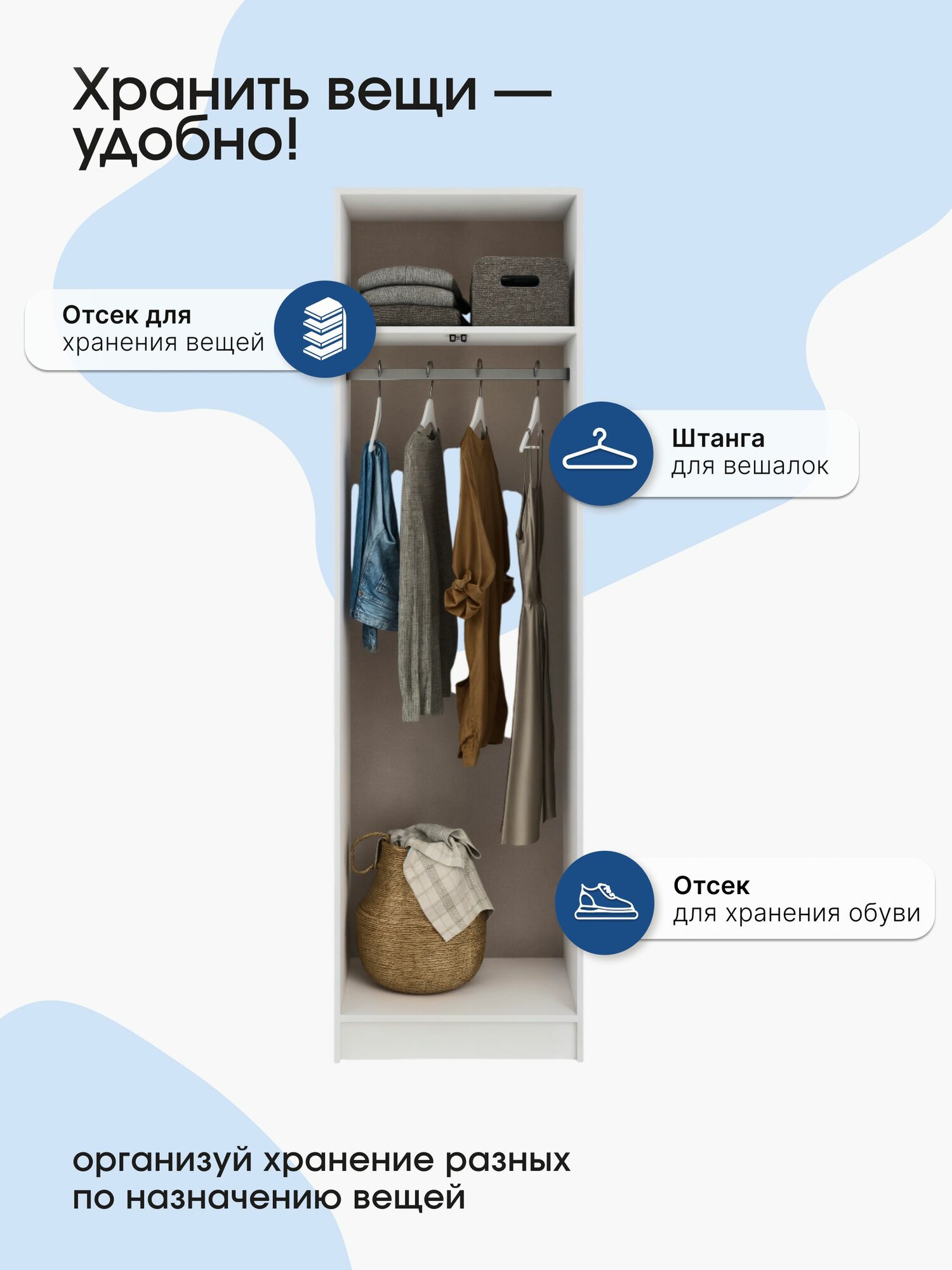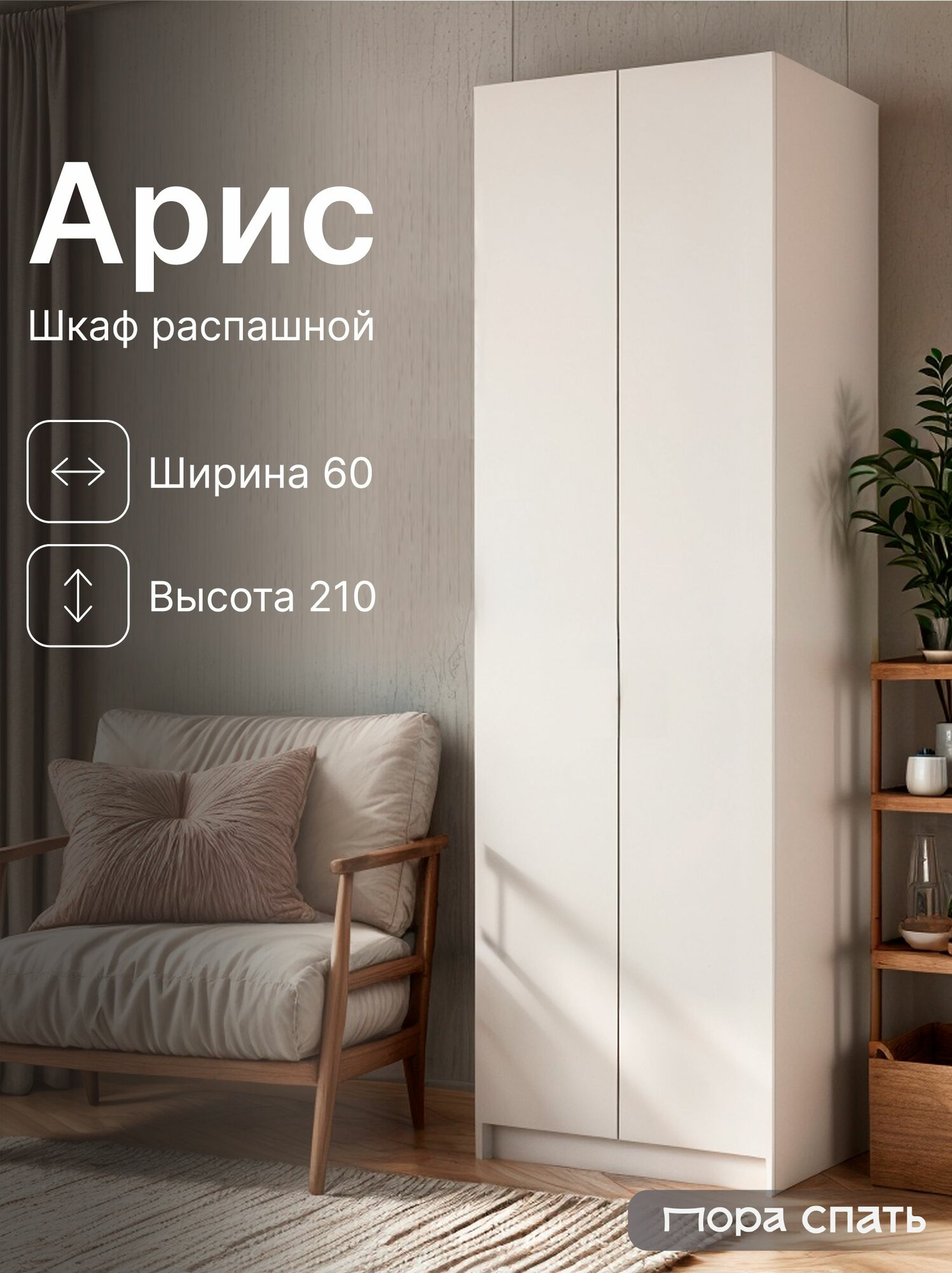 Шкаф распашной 2-х створчатый Арис, 60х50х210 см, белый, Пора Спать информация: