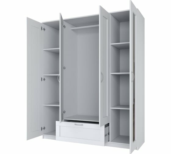 Шкаф для одежды для гостиной ГУД ЛАКК Сириус 4 двери 1 ящик, (ШхГхВ): 156.1х50.2х190 см, белый