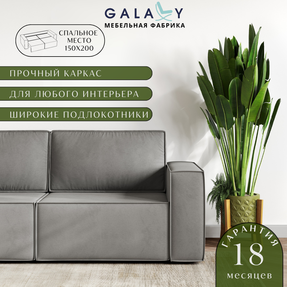 Отзывы на Прямой диван Лофт, со спальным местом 150х200см, для гостиной, с ящиком, механизм еврокнижка, велюр серый (Grey), GALAXY