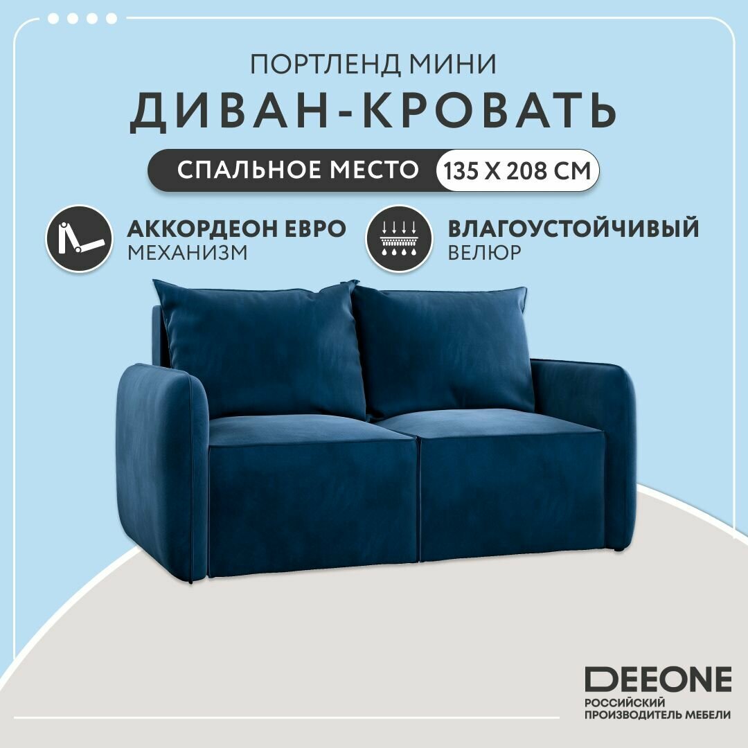 Диван-кровать раскладной прямой Dee One Портленд Мини , велюр, 163х90х80, синий 42 825 ₽