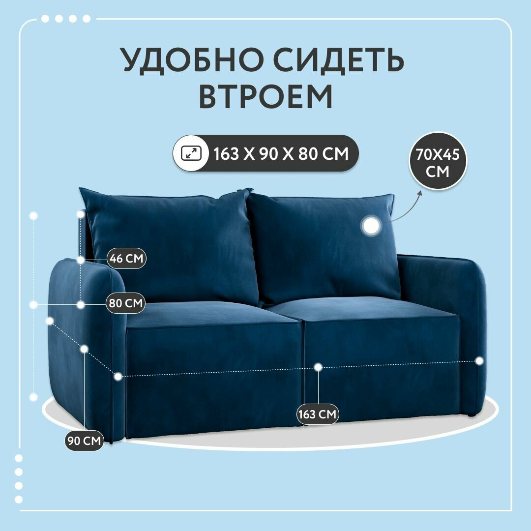 Диван-кровать раскладной прямой Портленд мини в гостиную, аккордеон-евро, велюр, синий, 163х90х80 информация: