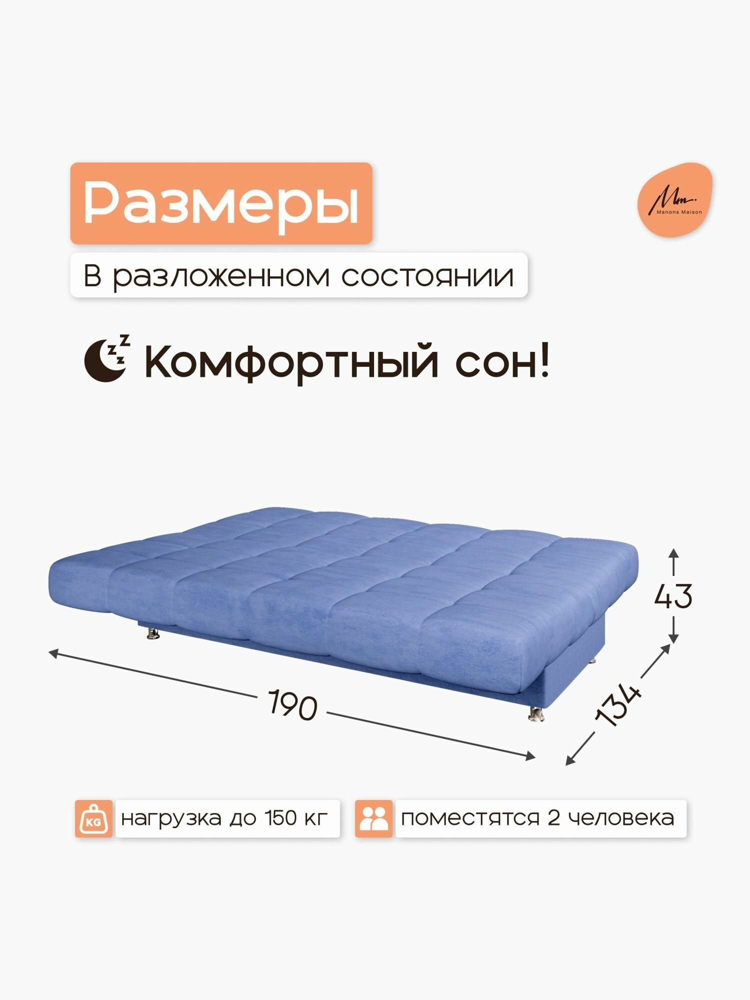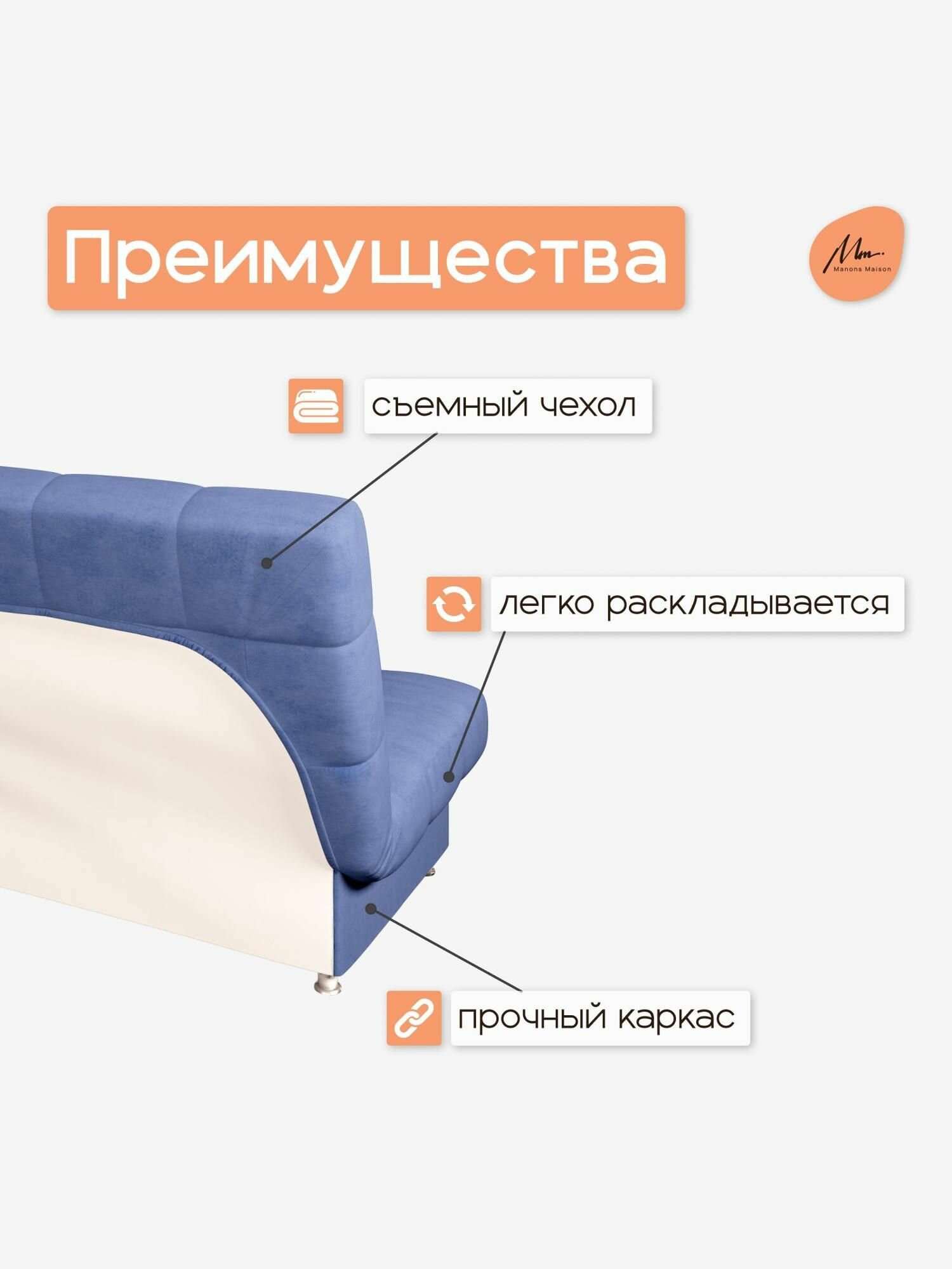 Прямой диван Manons Maison Юта, раскладной механизм Клик-кляк, Велюр синий, 190х98х98 см информация: