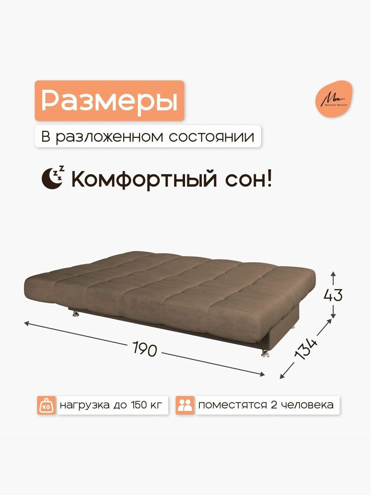 Прямой диван Manons Maison Юта, раскладной механизм Клик-кляк, Велюр коричневый, 190х98х98 см информация: