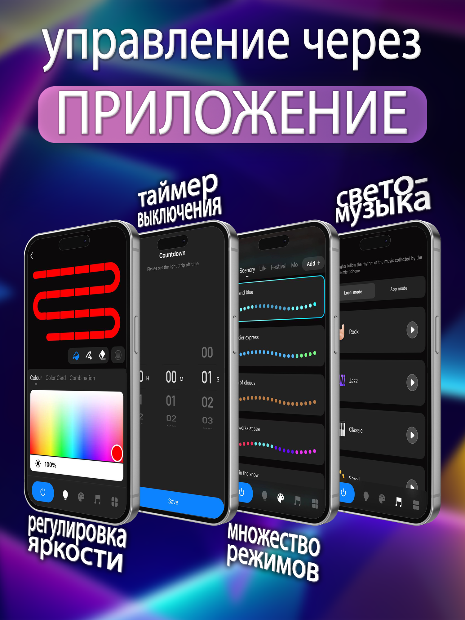 | Особенности | крепление в комплекте / лампы в комплекте / музыкальное сопровождение / подсветка / режим ночника / с выключателем / смена цвета освещения / таймер |