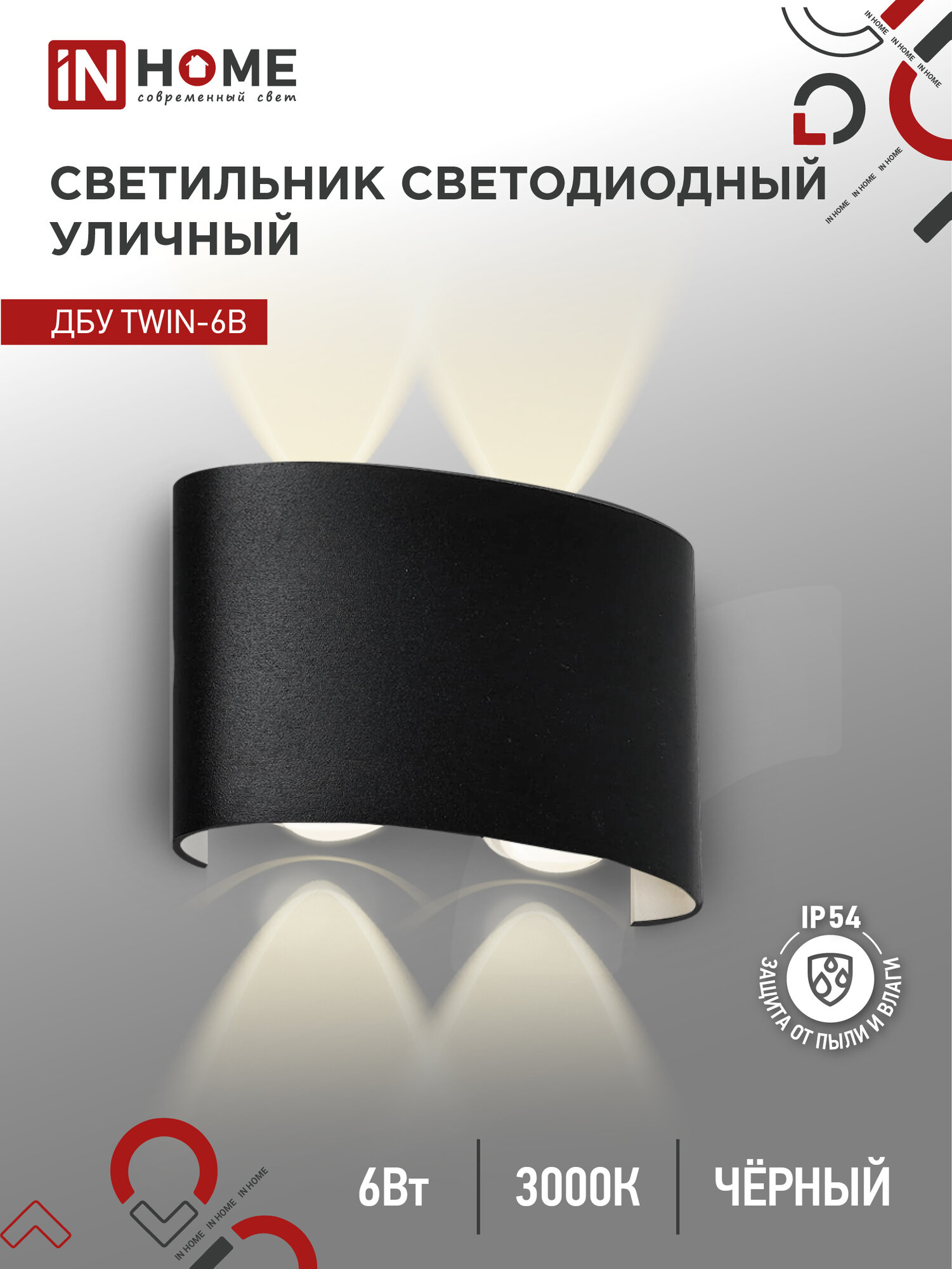 Отзывы на Светильник уличный светодиодный ДБУ TWIN-630BL 6Вт 3000К IP54 черный IN HOME (1шт)