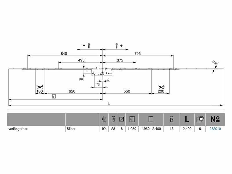 Замок G-TS LM 92 PZ/35/16/92/8 с 4i. S. оцинк,(прив. от ручки), L=2400мм информация: