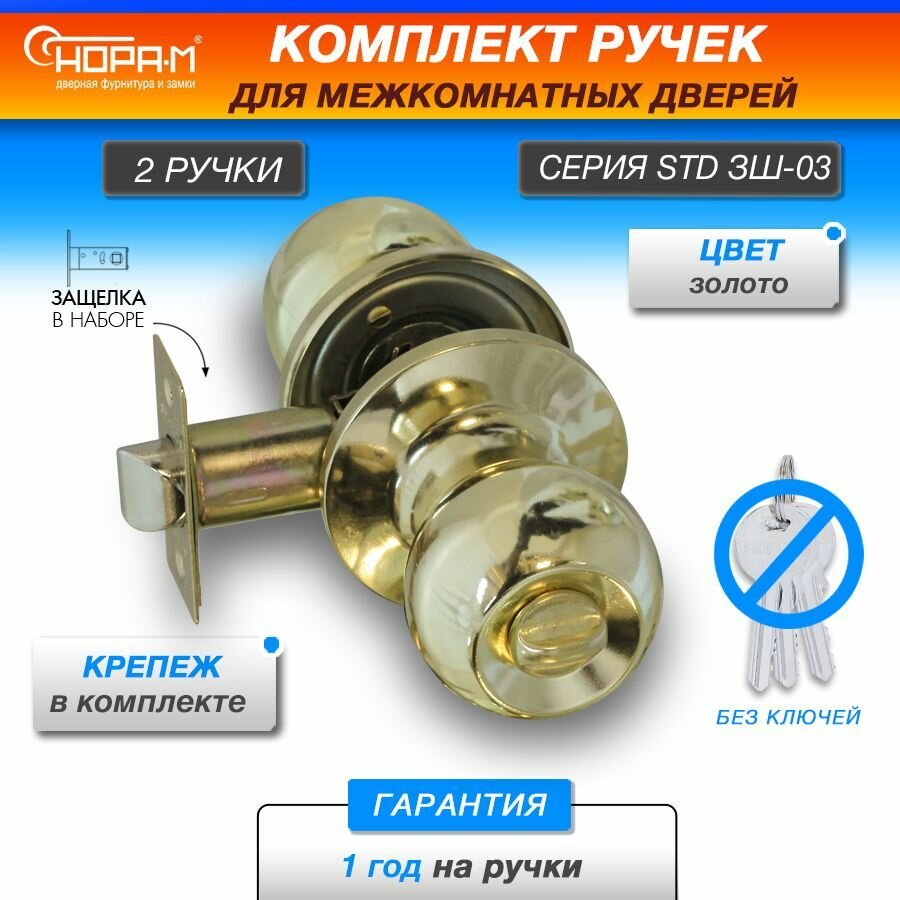 Ручки с защелкой межкомнатные Нора-М ЗШ-Э-03 фиксатор (поворотные, кнобы), цвет Золото информация: