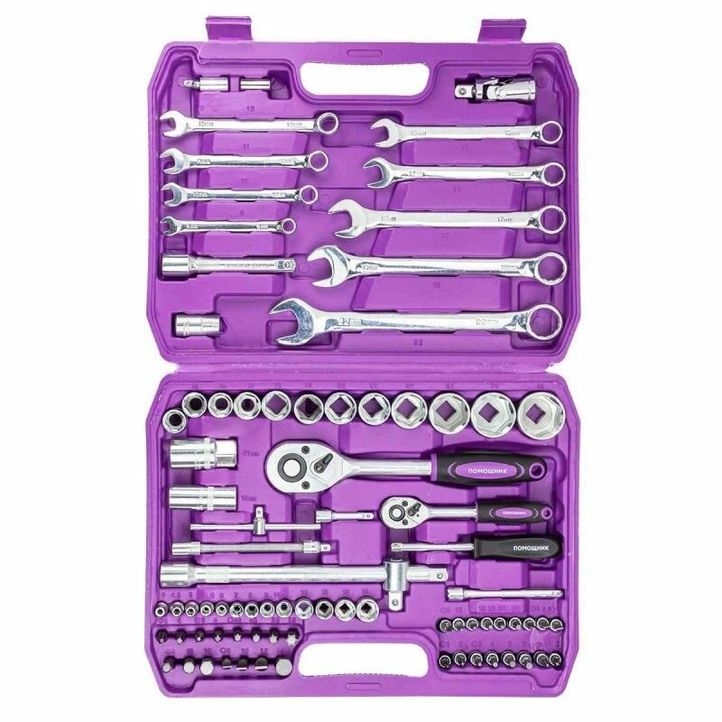 Отзывы на Набор инструментов Помощник 82 предмета (1/4", 1/2"), в пластиковом кейсе