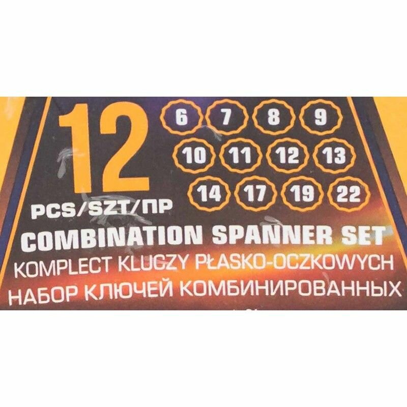 Набор ключей комбинированных MEGATOOLS 12 предметов (6-14,17,19,22мм), в пластиковом держателе информация: