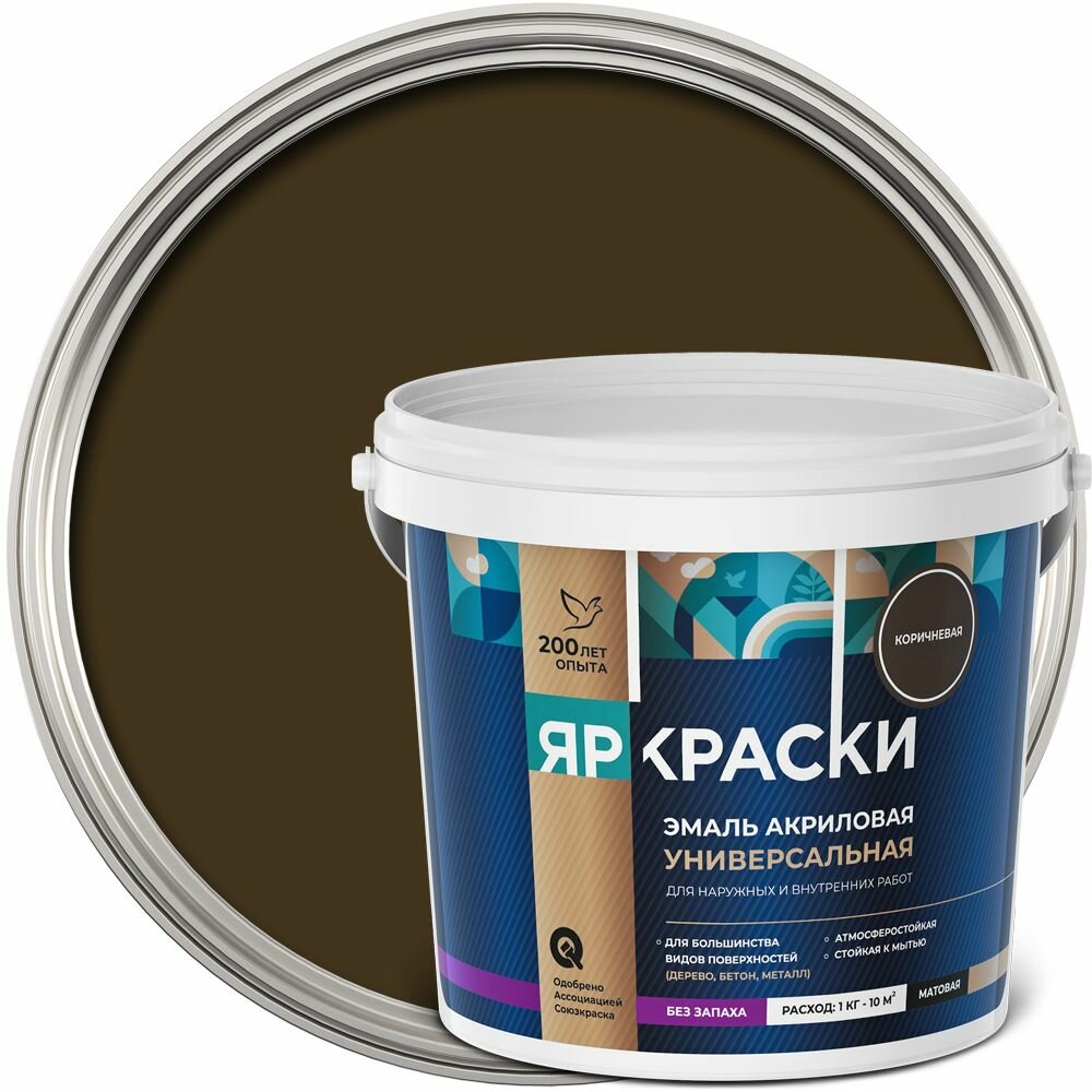 Эмаль акриловая универсальная яркраски коричневая матовая без запаха, 0.9 кг информация: