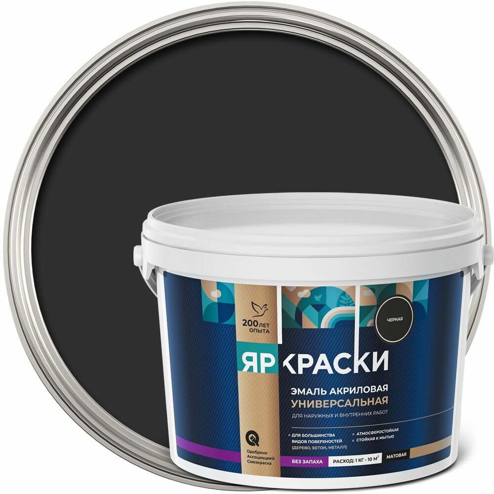 Эмаль акриловая универсальная яркраски черная матовая без запаха, 2.5 кг информация: