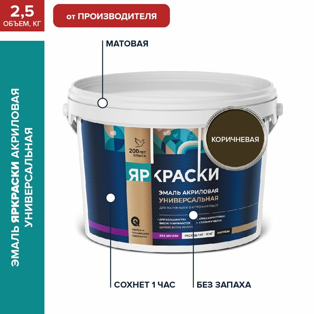 Эмаль акриловая универсальная яркраски коричневая матовая без запаха, 2.5 кг информация: