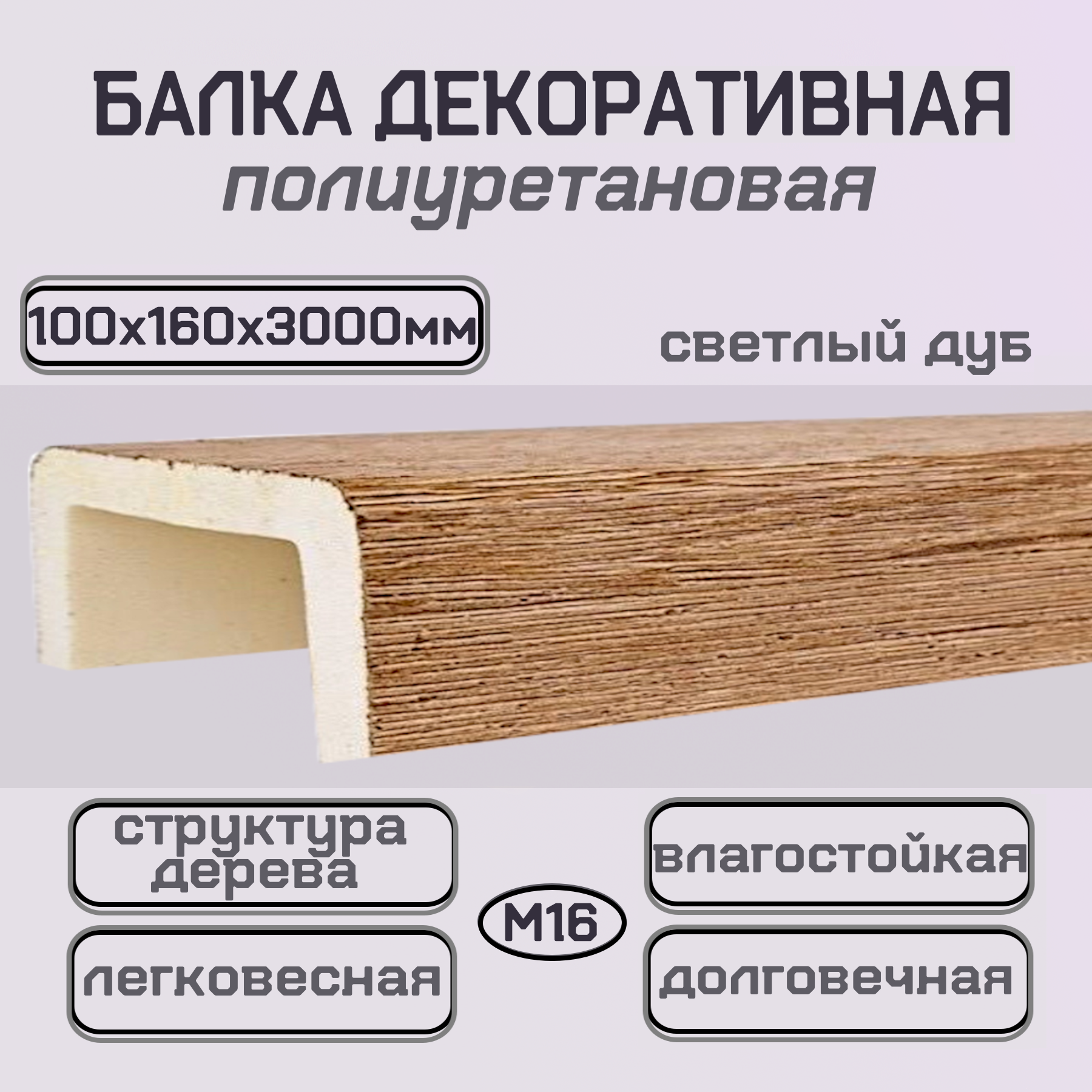 Имитация бруса Балка полиуретановая декоративная Светлый дуб 100ммх160ммх2000мм 2 730 ₽