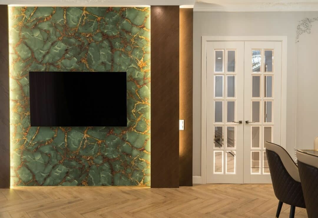 Гибкий Мрамор Оникс Персидский, лист 142х284 см, 4,033 кв. м, толщина 2 мм, подходит для наружной и внутренней отделки, экологичный, состоит из натуральной мраморной кроошки информация: