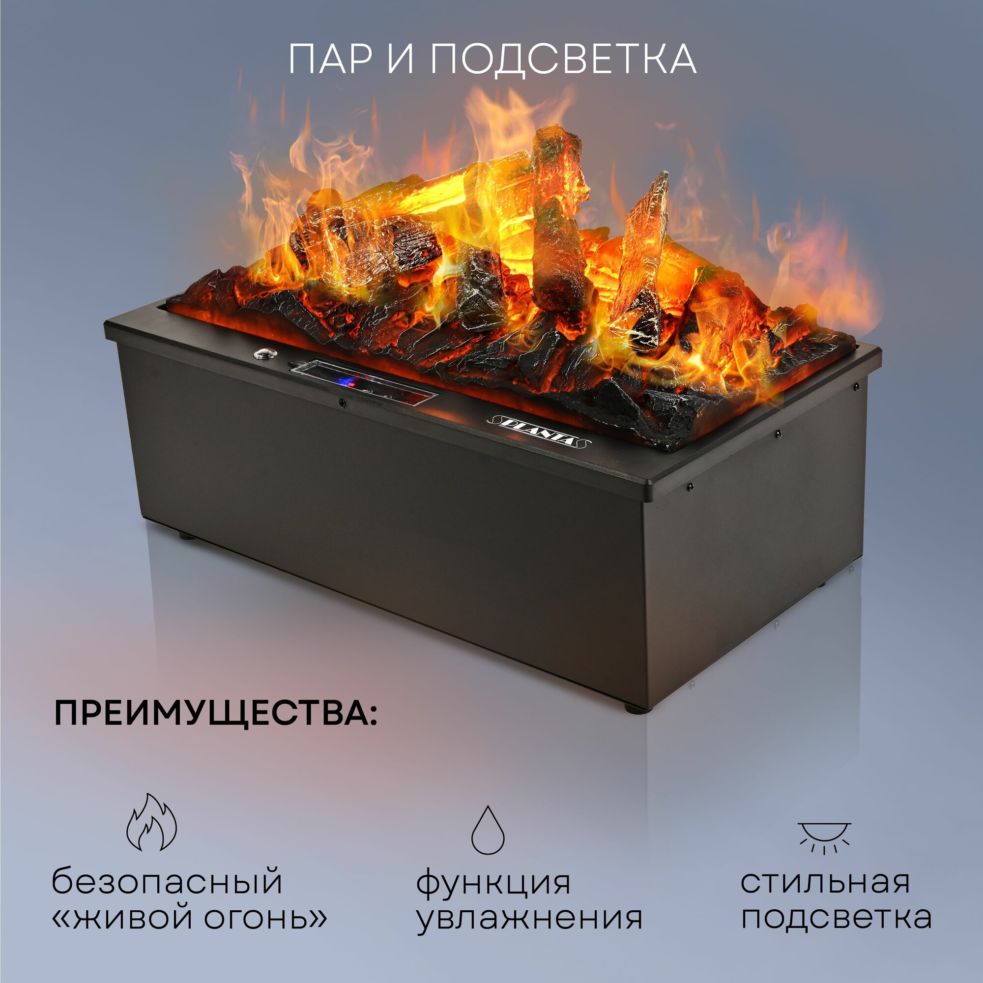 Камин электрический паровой (3D камин) PLANTA PL-FP500, имитация дров информация: