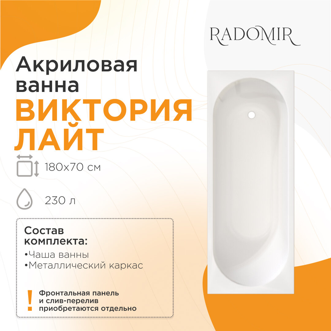 Отзывы на Акриловая ванна Радомир Виктория ЛАЙТ 180х70 на металлическом каркасе. 2-01-0-0-1-261Р
