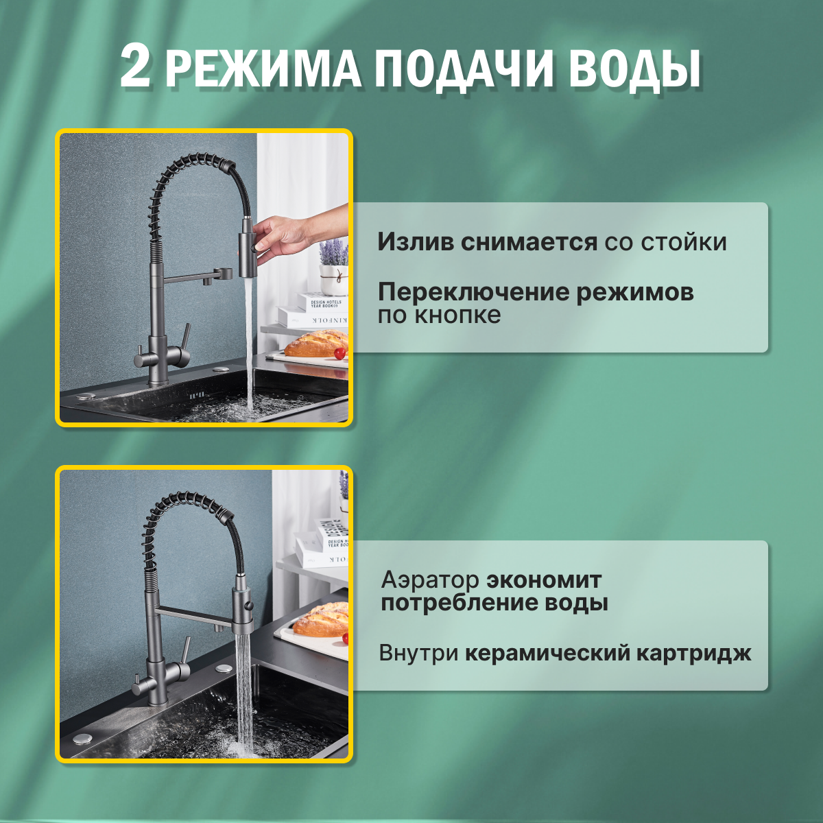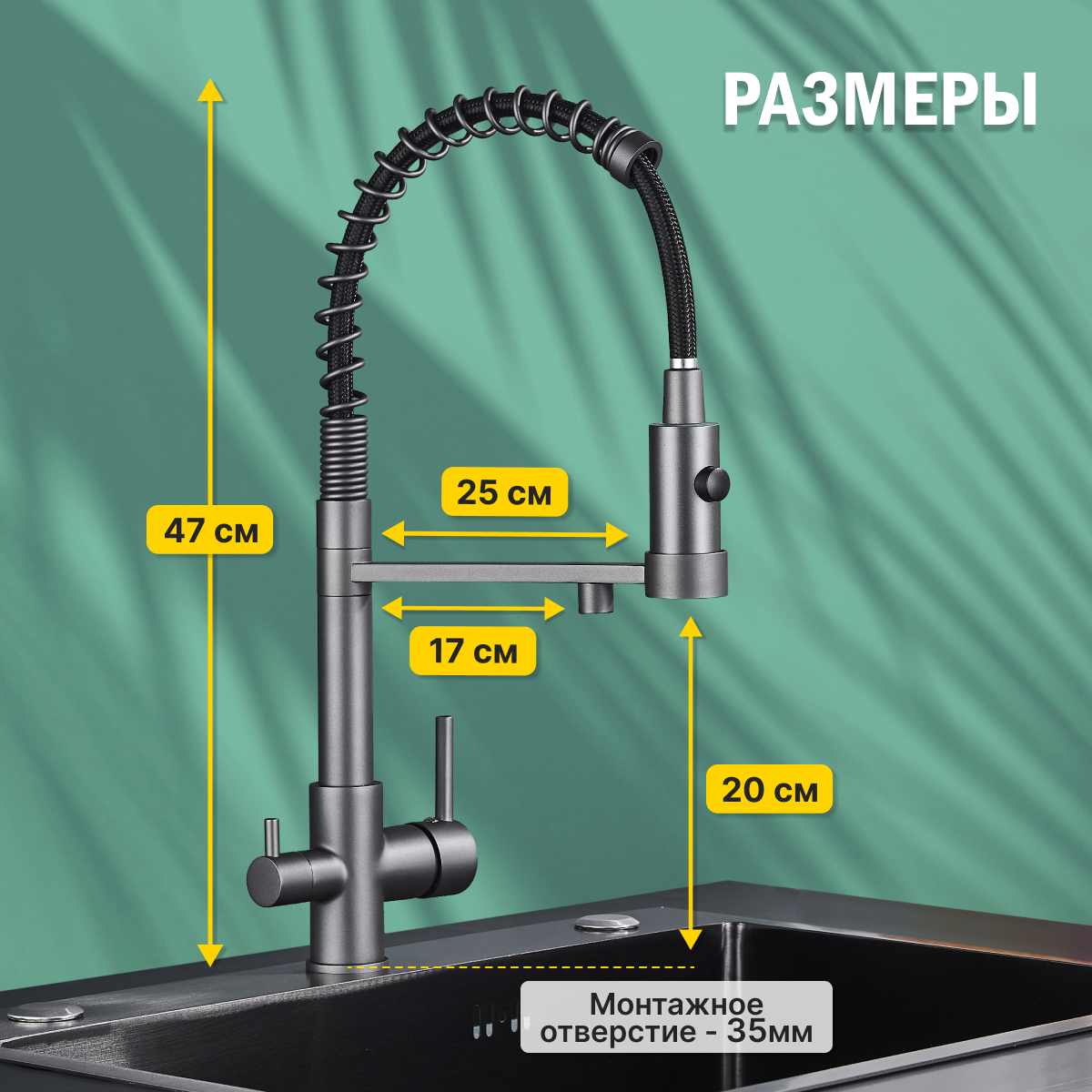 Смеситель для кухни DHome с гибким изливом и фильтром для питьевой воды, серый, латунь информация: