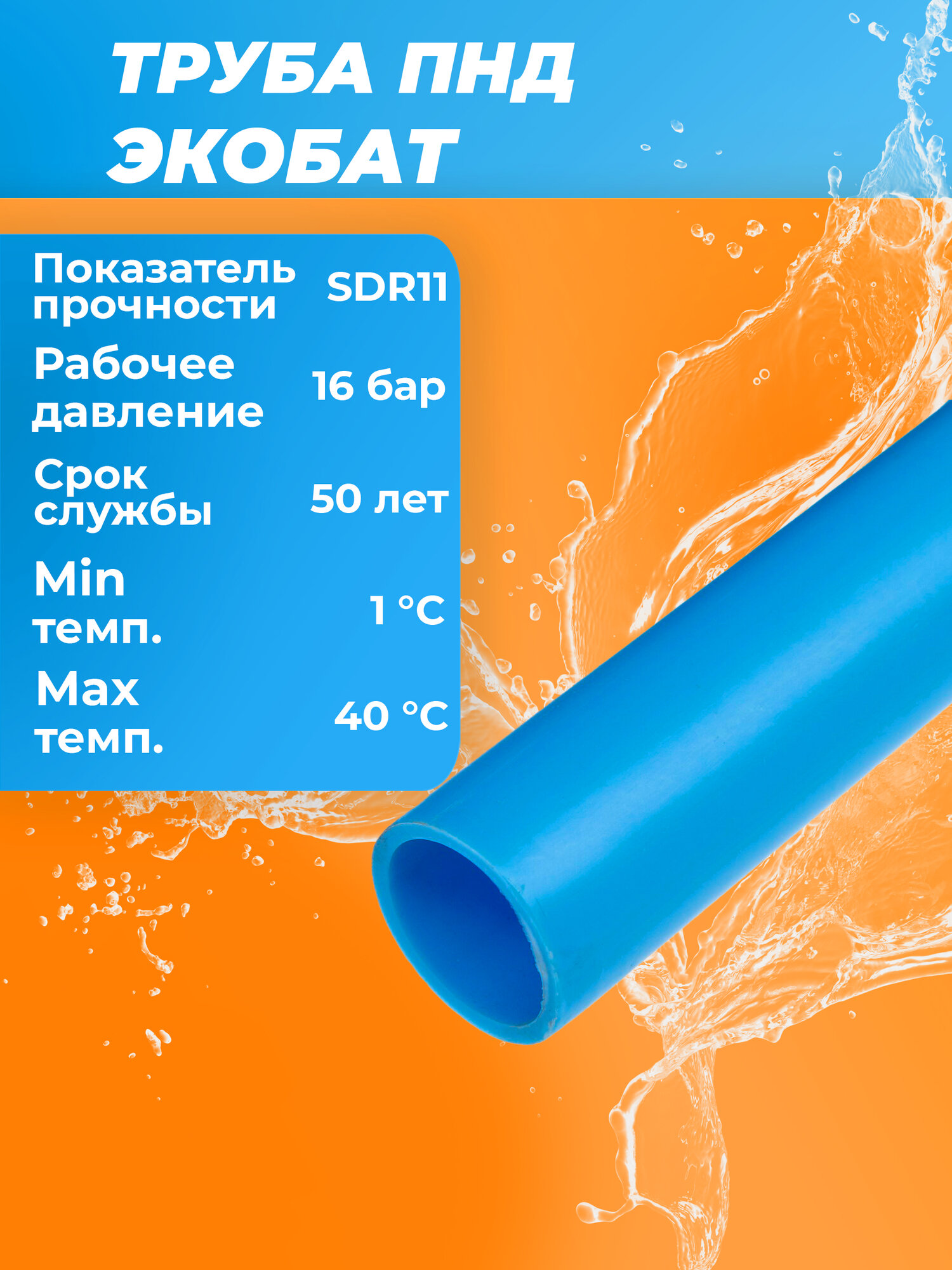 Труба ПНД Экобат 20*2 для водоснабжения питьевая водопроводная бухта 90 метров информация: