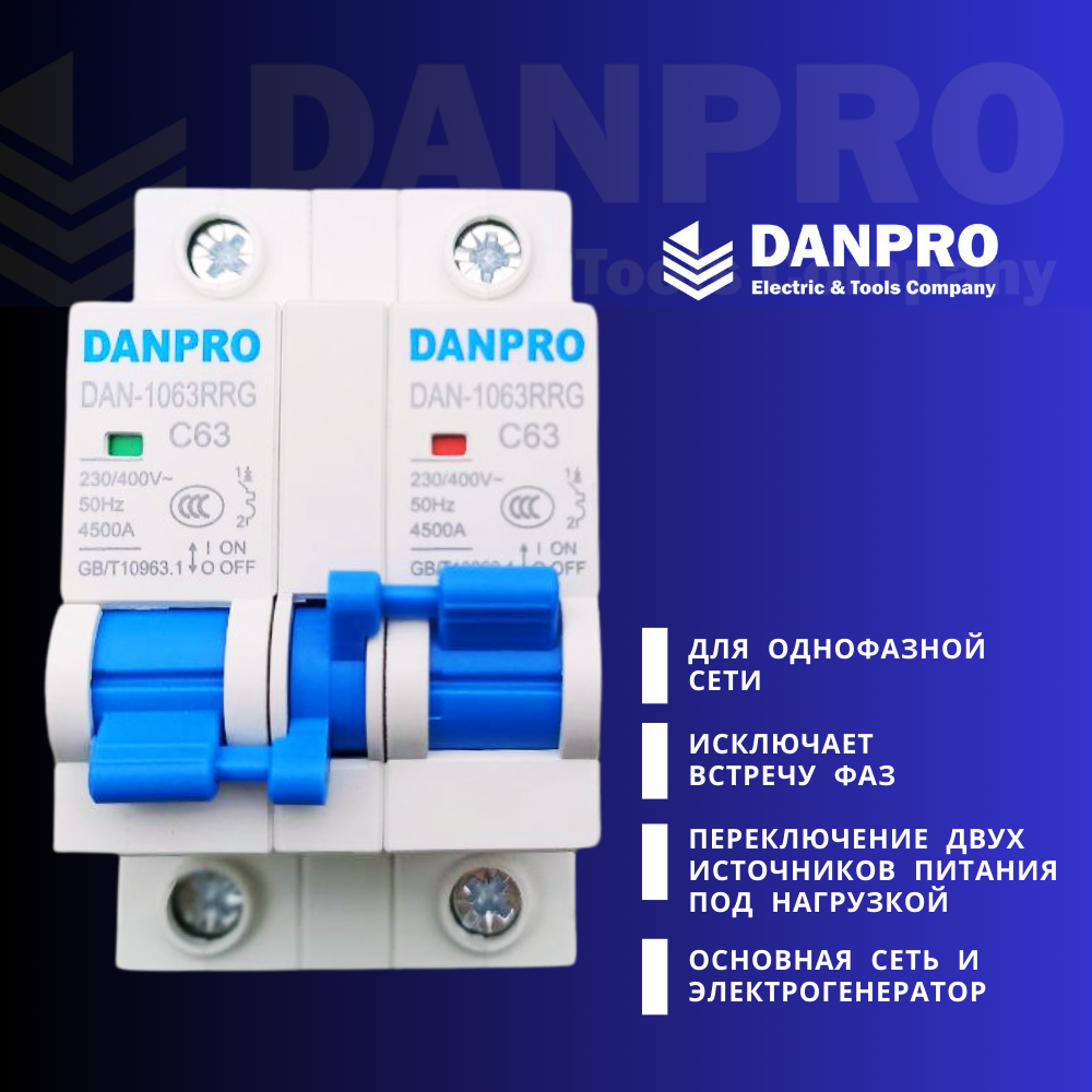 Рубильник реверсивный механический DANPRO, автоматический ввод резерва генератора, однофазный 1P-1P на DIN рейку 1 438 ₽