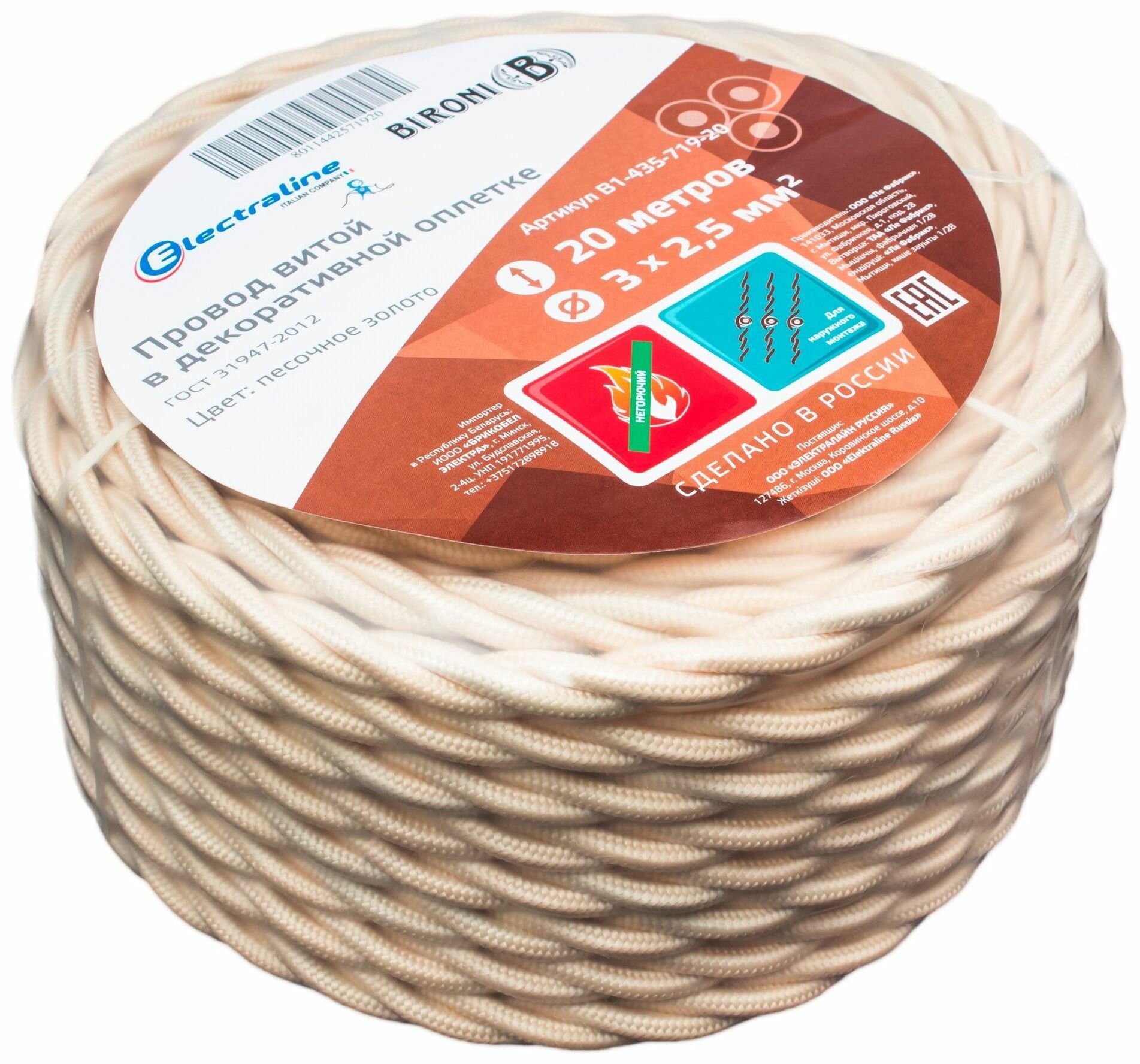 Провод ретро Bironi 3х2.5 матов. зол./песочн. (уп.20м), B1-435-719-20 информация: