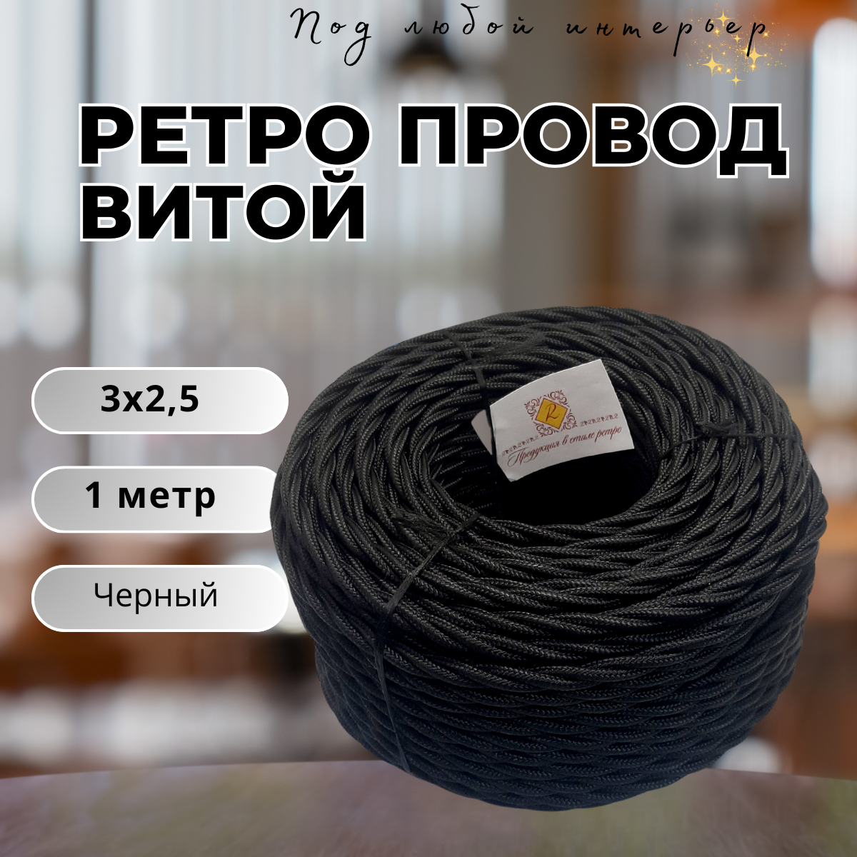 10 цен на Витой ретро провод BIRONI Бирони 3х2,5 матовый, 1 м/уп, цвет: B1-435-73-1 черный