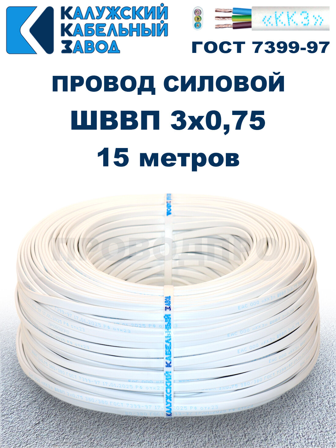Провод ШВВП 3х0.75 15метров Белый Калужский кабельный завод ГОСТ 1 074 ₽