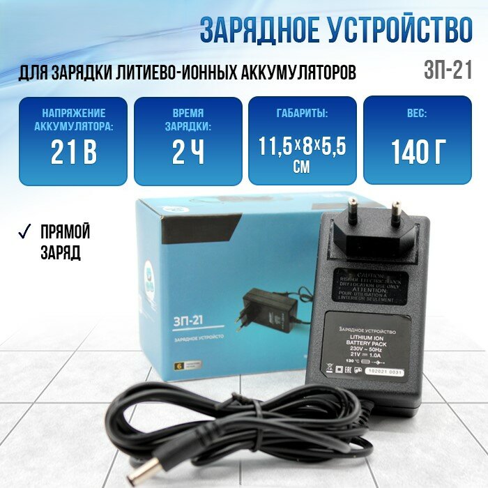 Отзывы на Зарядное устройство ЗП-21, для Li-ion аккумуляторов, 21В, чёрный