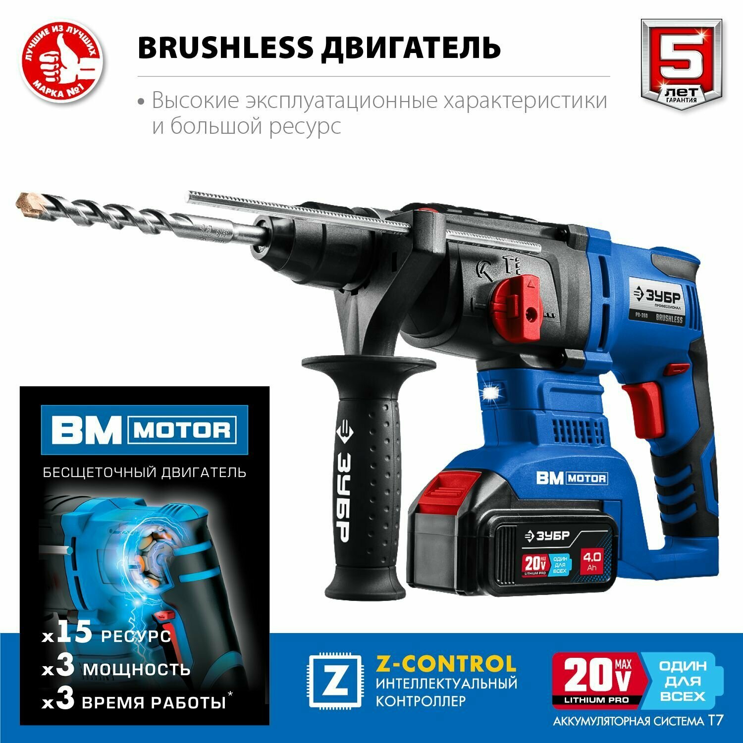 Отзывы на Бесщеточный перфоратор ЗУБР Т7, 20 В, 26 мм, 2 АКБ (4 Ач), кейс, Профессионал (PB-260-42)