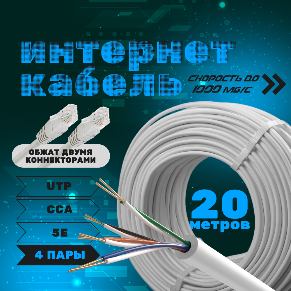 Интернет кабель витая пара ZDK для использования на улице CCA (20 метров) 890 ₽