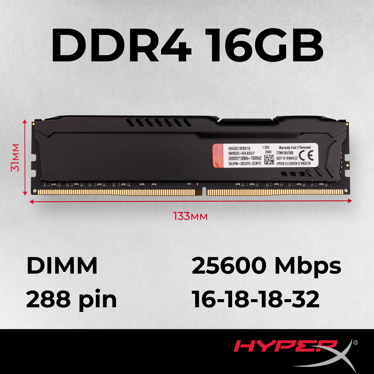 Оперативная память HyperX Fury 32 ГБ (2 шт по 16 гб) DDR4 3200 МГц DIMM CL16 HX432C16FB3/16 информация: