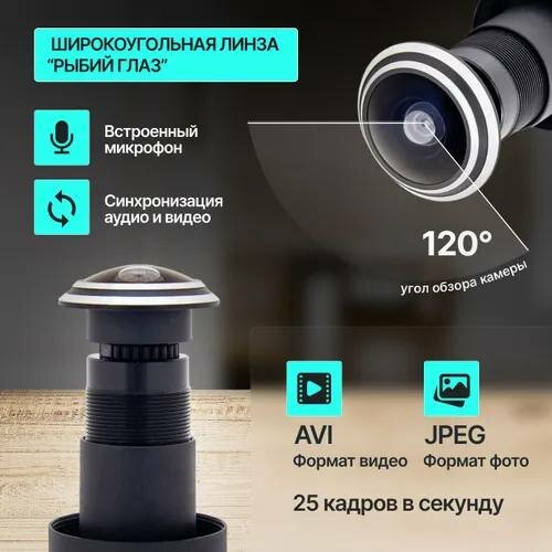 Видеоглазок камера наблюдения, управление с телефона, запись, IP67, чёрный информация: