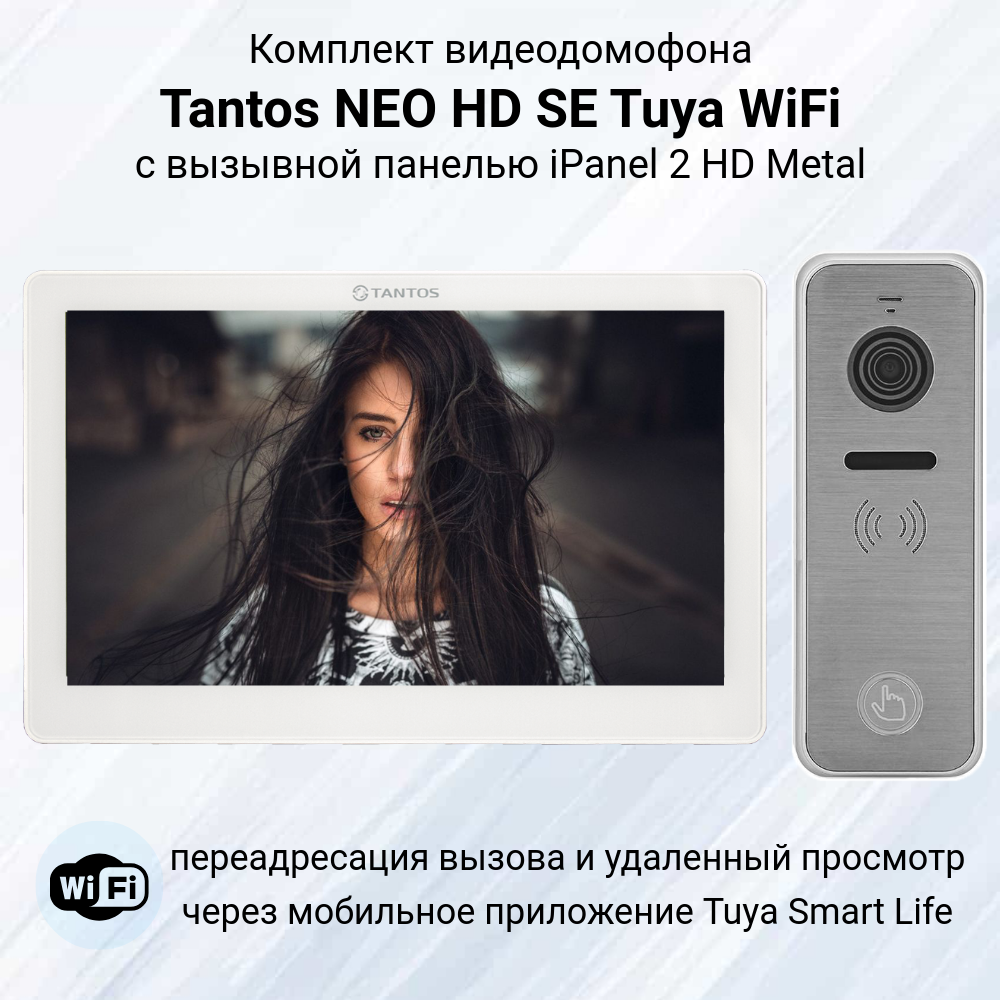 Комплект видеодомофона Tantos NEO HD SE Tuya Kit WiFi (белый) с панелью iPanel 2 HD (металлик) информация: