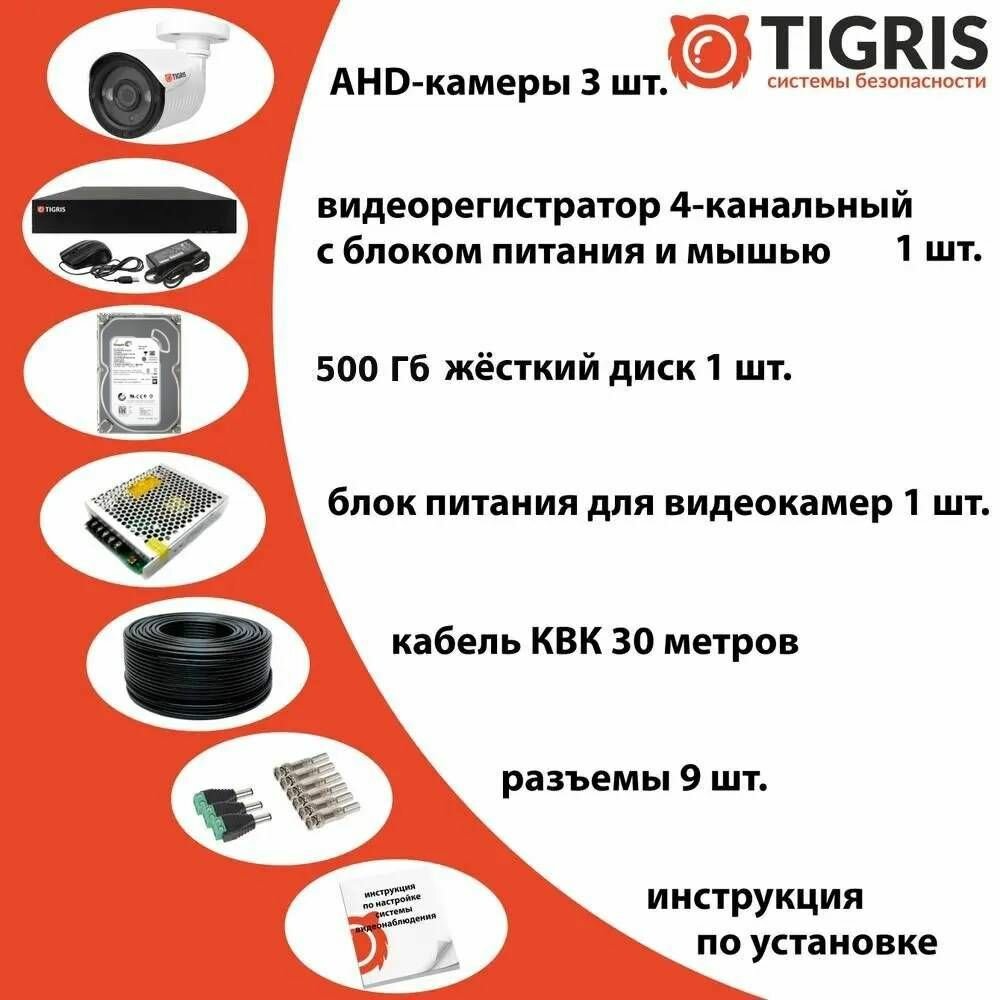 Готовый комплект видеонаблюдения с жестким диском FULL HD на 3 уличные камеры информация: