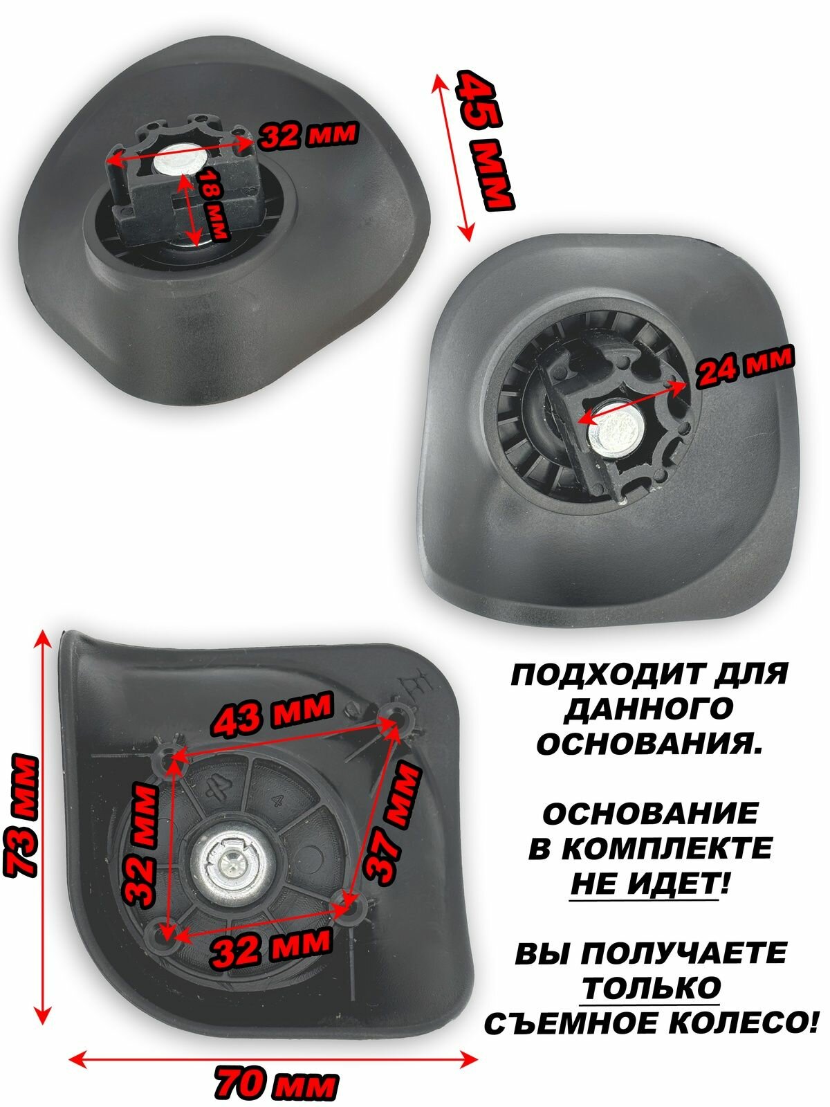 Колесо для чемодана L'case, черный информация: